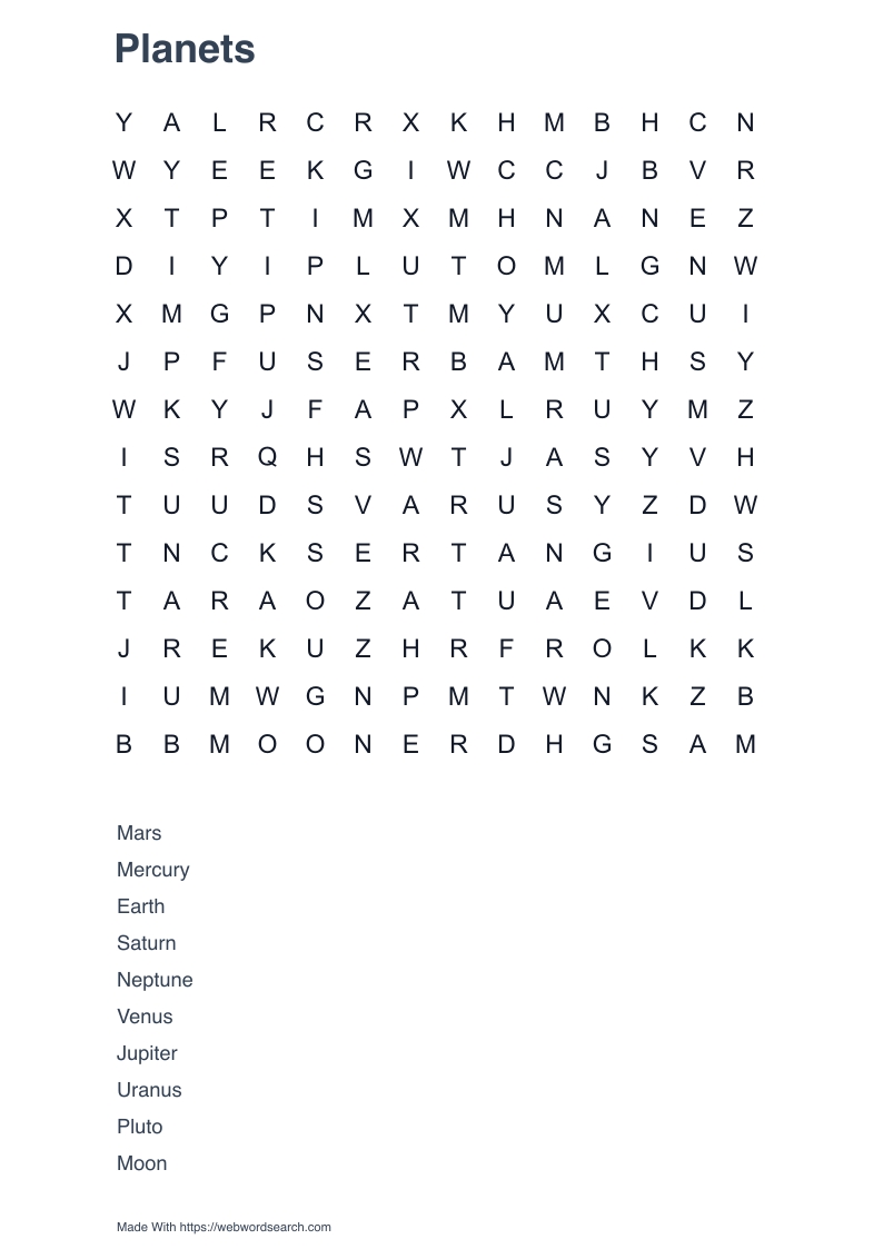 Test your knowledge of the planets in our solar system with this Word Search puzzle.